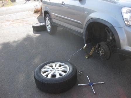 タイヤを持ち上げる時が危険なので、よく構えて、ゆっくりと持ち運びです。