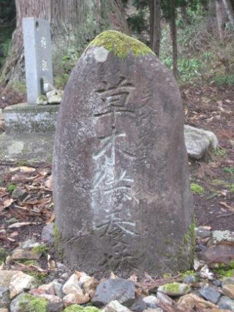 1m足らずの高さの自然石に、「草木供養塔」 文政元年八月と刻まれているのが読める。