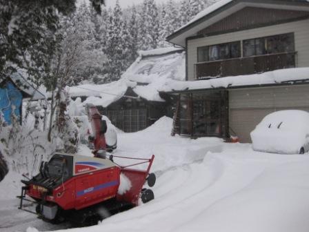 ここもラッセルして家まで来てみると、これまた雪で一度に車が入らない。