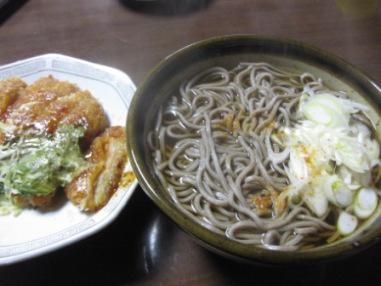 「スーパー うめや」で購入の鶏カツの甘酢あんかけをおかずにして、蕎麦をすすりました。