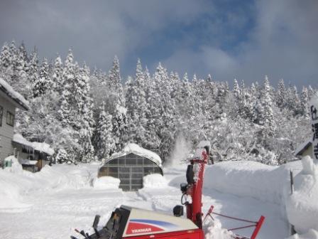あとは、屋根から落下する雪が軒につかえているので、今日はこれをやるほかあるまい、というわけでスコップで一人で地道に雪掘り。