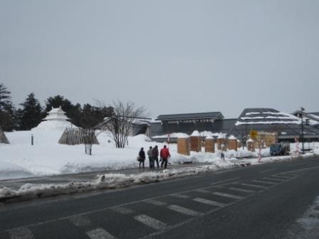 城址苑の南側にも、雪灯籠まつりの準備で「とうふ」と呼ばれている、コンパネ作った箱に雪を詰められて並んでました。
