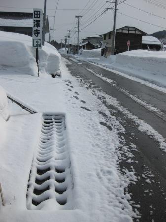 お寺の前の道の雪も、たちまちびじゃびじゃとなり、側溝を流れる水音が心地よいではないか。