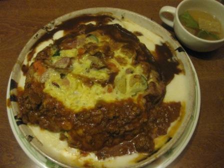 早速ワタクシ「スパニッシュオムレツグラタン」(あまり覚えていないので間違っているかも…。 スープ付き 1,050円)