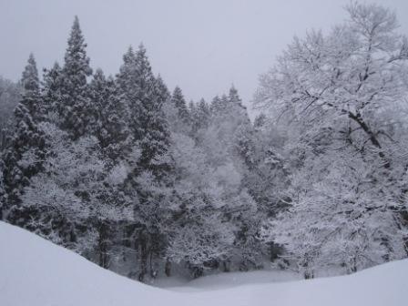 さて、裏山の木々に雪の華が咲いたようになっておりました。