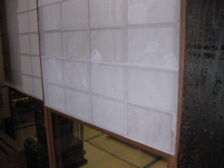 本堂とその手前の廊下沿いの障子窓を、毎日、補修して貼らなければならない。