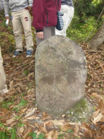 「飯豊山」「湯殿山」というもので、「飯豊山」の石塔は俵石という、このあたりから出る面白い形状の石という説明であった。