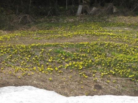 周囲を見回す余裕もないというか、事情があってというか、身から出た錆というか、ドタバタしているうちに、ふと裏山を観ると福寿草が咲きそろっていた。