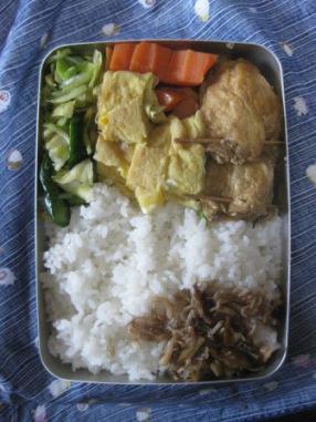 佃煮と油揚げ詰めは、醤油と砂糖で甘じょっぱく煮てある。
