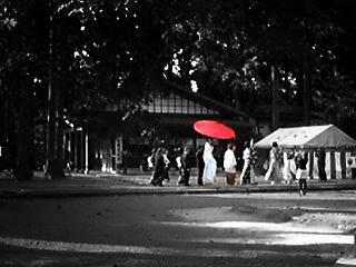 白無垢と赤い傘のコントラストがすごく素敵でした。