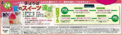 »³·Á£Ä£ÃÆÃÊÌ´ë²è¡¡¥Ð¥¹¤Ç½ä¤ë¡È¤Þ¤Û¤í¤Ð²Æ¤Î¥¹¥¤¡¼¥Ä±ó¡ɤò¼Â»Ü¤·¤Þ¤¹¡£ ´ü¡¡¡¡¡¡Æü¡¡¡¡Ê¿À®£²£¶Ç¯£¸·î£²£´Æü¡ÊÆü¡Ë Ê罸¿Í°÷¡¡¡¡¡¡£²£°Ì¾ »²²ÃÈñ¡¡¡¡¡¡¡¡£³¡¤£µ£°£°±ß ¤«¤É¹¤ä¥¸¥§¥é¡¼¥É¤ò¿©¤Ù¤Ê¤¬¤é¡¢¤Ö¤É¤¦¼í¤ê¡¢¤½¤ÐÂǤÁ¡¢²ÆÌîºÚ¼ý³ÏÅù¤ÎÂ賤ò¤·¡¢¹âȫĮÆâ¤ò¥Ð¥¹¤Ç½ä¤ë³Ú¤·¤¤´ë²è¤Ç¤¹¡£ ¤ß¤Ê¤µ¤ó¡¢À§Èó¤´»²²Ã¤¯¤À¤µ¤¤¡£ |