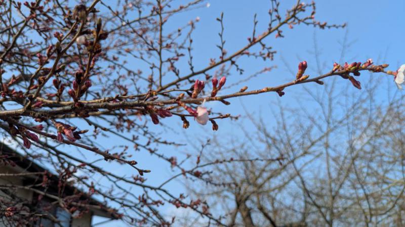 旧高畠駅で早咲きの「エドコヒガンザクラ」が開花しました。