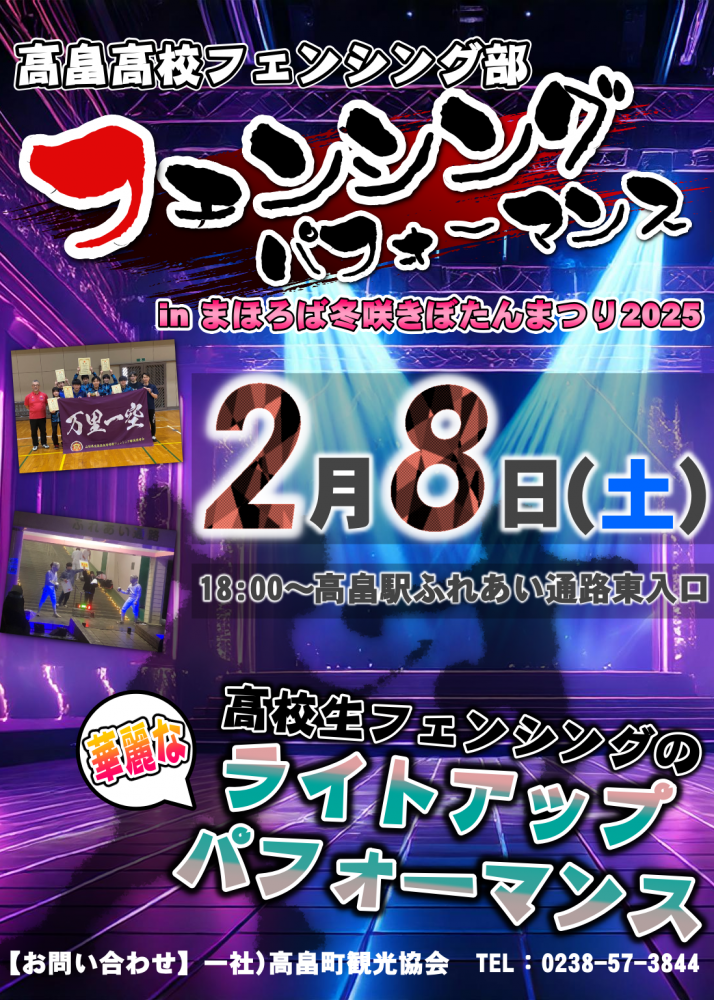 2月8日(土)の「まほろば冬咲きぼたんまつり」において高畠高校生フェンシング部による演武パフォーマンスが行われます!