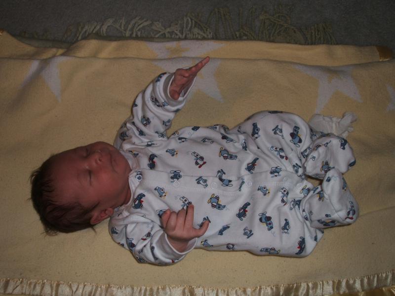 よく両手を上げて寝てます。足も魚みたく上がってるときがある。