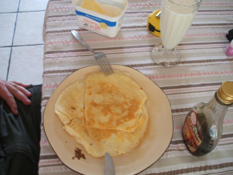 今日は一枚こげたので、裏のブッシュに住んでる七面鳥に投げてやったら食べてました。笑