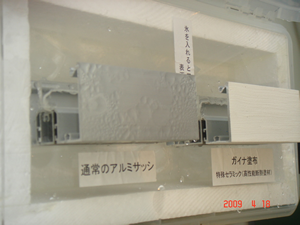 アルミサッシの表面に、ガイナを塗装!塗らない方のアルミ表面には、
