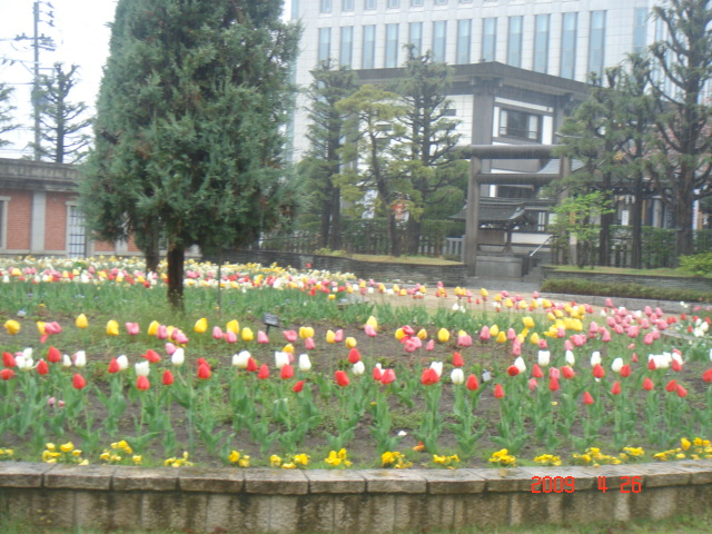 文翔館では、桜に続いてこんなにかわいらしいチューリップが咲いていました☆