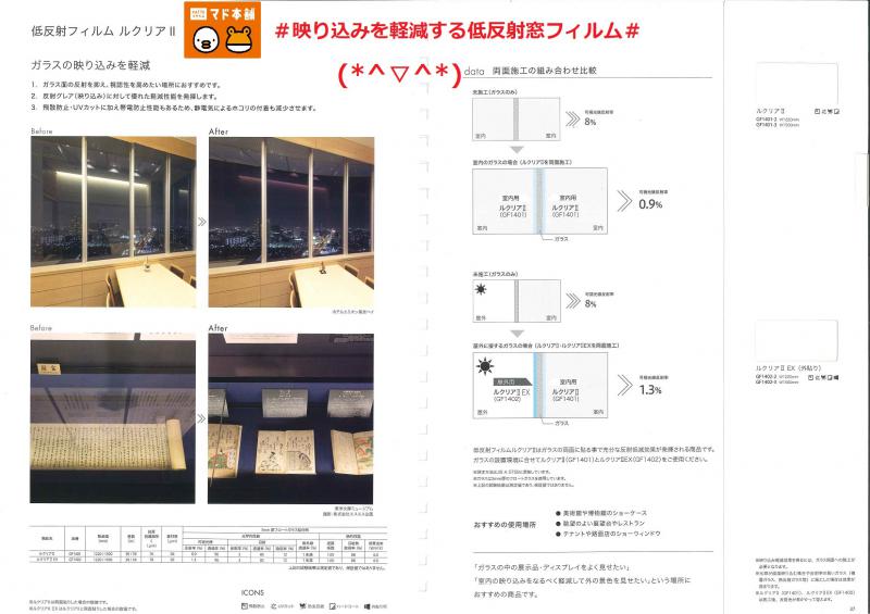 #ガラス面の*反射*を抑え、視認性を高めたい場所にお奨めです(*^。^*) #飛散防止・UVカットに加え、帯電防止性能もあり、静電気によるホコリの付着も減少させます(^。^)y-.。o○