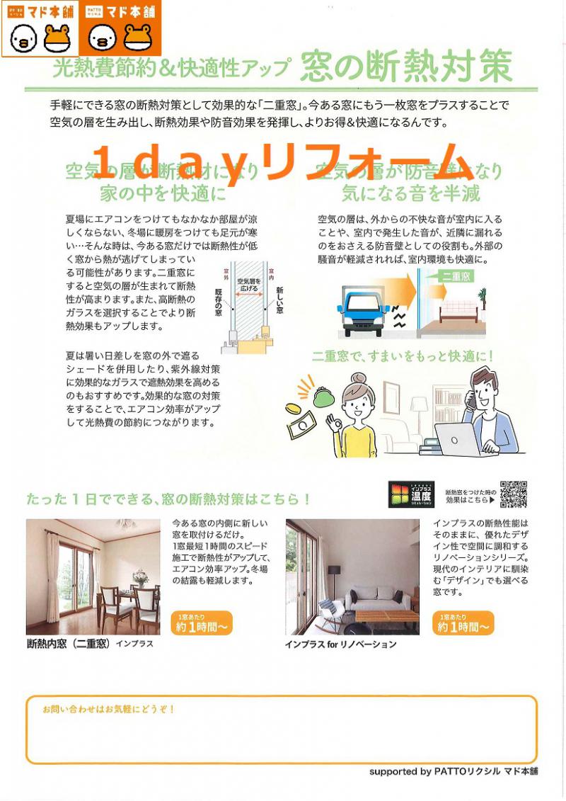 ▼#mado断熱#1dayリフォーム(^O^)/
