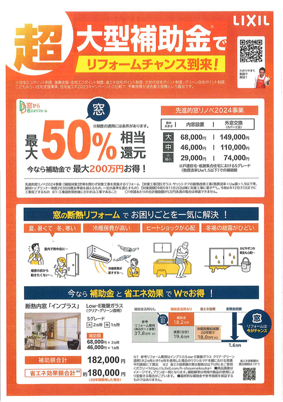 #メチャメチャお得(^-^)?最大50%相当還元「先進的窓リノベ2024事業」ナント、最大で★200万円★お得!窓の寒さ暑さ対策?お困りゴト?お待ちしております('ω')ノ