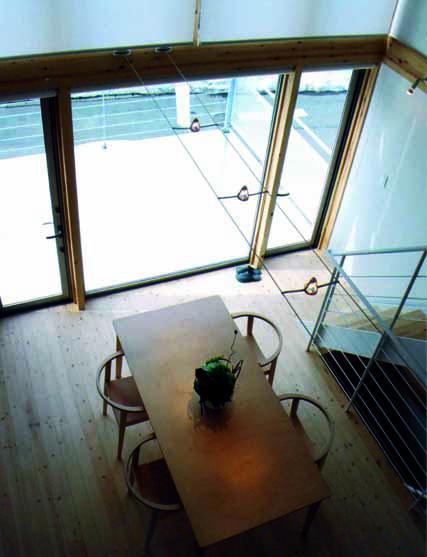 ▼3階ファミリーズペースから吹抜を通してリビングを見る