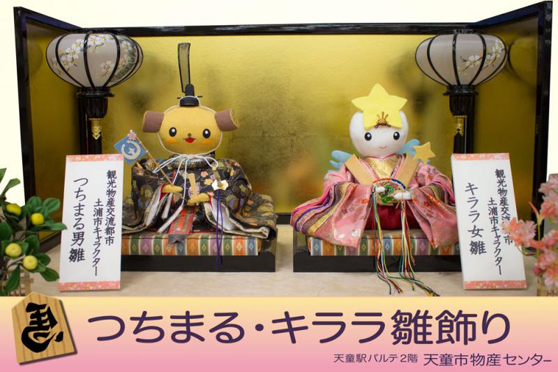 [画像]天童駅直結 パルテ2階にございます!観光物産交流都市である土浦市のゆるキャラ「つちまる・キララ」の雛飾りや古今雛、雛飾掛図を