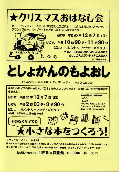 *当日持ってくるもの はさみ、じょうぎ、布(本のひょうしにしたいもようのもの。大きさは20p×30cm