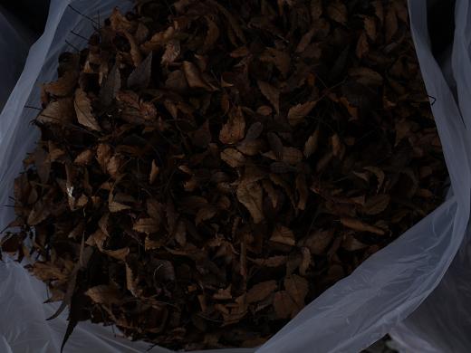 集めた落ち葉をゴミ袋に入れ並べてみると