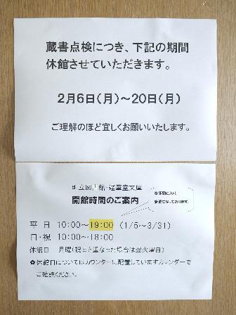 2月6日(月)〜20日(月)の間、蔵書点検の為図書館は休館させて頂いております。