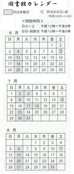 6月から8月までの休館日は図書館カレンダーでご確認ください。