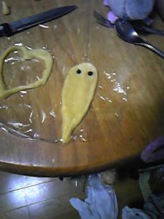 P君がさっさと作り始めてしまい・・・見ると‘ナマズクッキー‘に