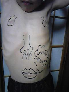 けっか(?)・・・P君の腹にメッセージを書こう!という事になりました!