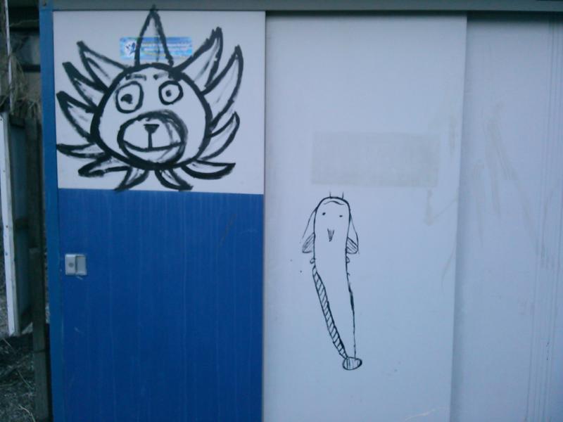 なんだって、道路から丸見えの所に、こんなの書くんだろう・・・。