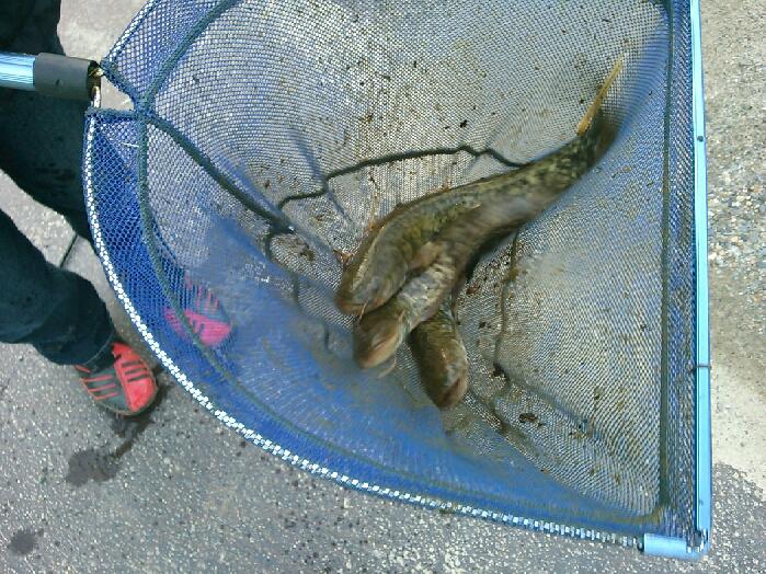 P君、用水路の所で、網ですくって大量ゲットです!!
