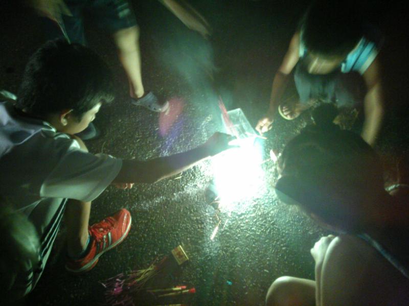 夏休みの終わり、近所のちびっこたちで花火をしました。