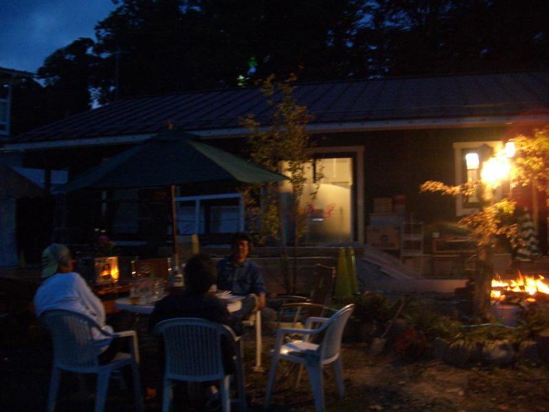 事務所の中は荷物でいっぱいなので外でキャンプファイヤーです。