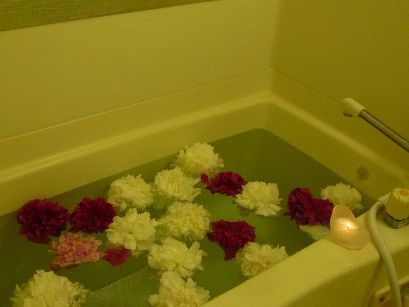 切り落としたお花とお風呂に入ります。
