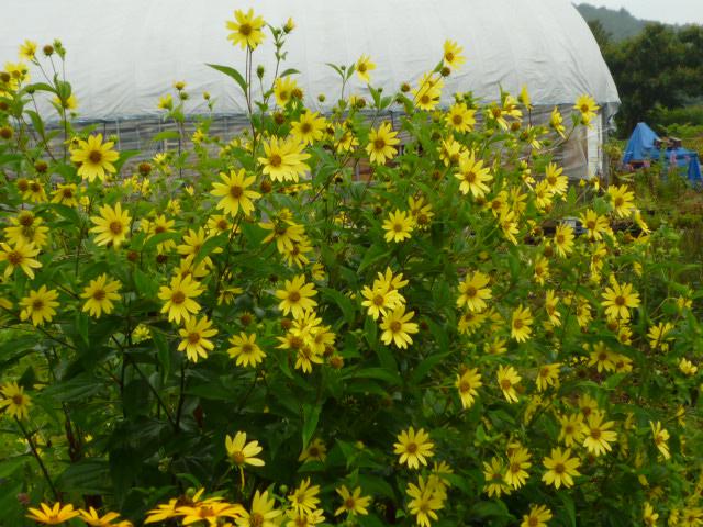 元気にミニひまわりが、咲いています。
