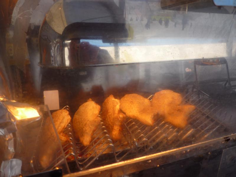 ▼尾花沢雪まつり、米粉100%スイカ糖入りあんたいやき登場