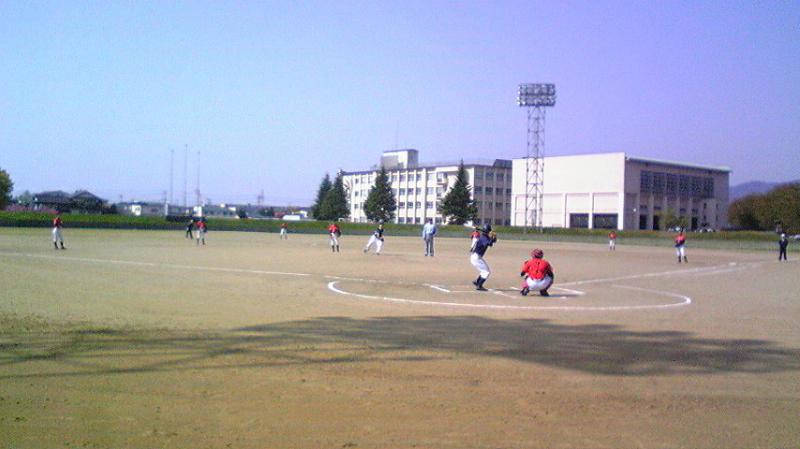 長井市営球場の第一試合は米沢五中と白鷹西中。