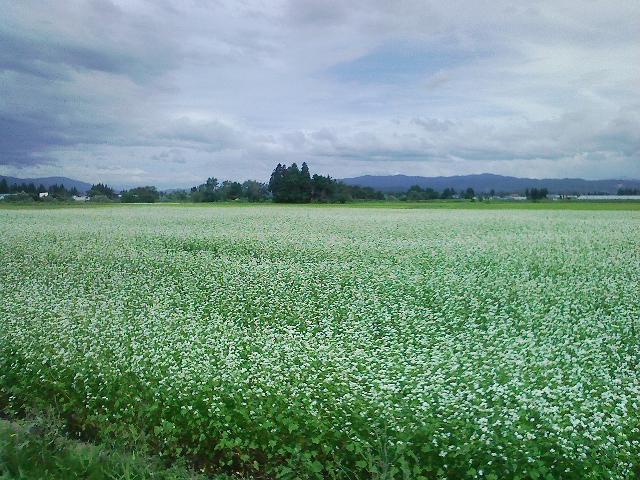 【山形では、まだまだ暑い毎日でしたが、トンボが飛び、風が秋を感じさせるようになってきていました。画像は、そば畑です。】
