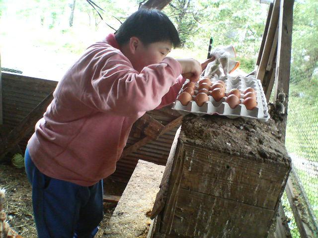 にわとりの卵とってます!