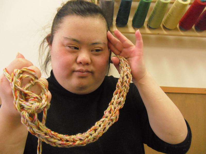 あとりえの利用者さん3名が編みました。