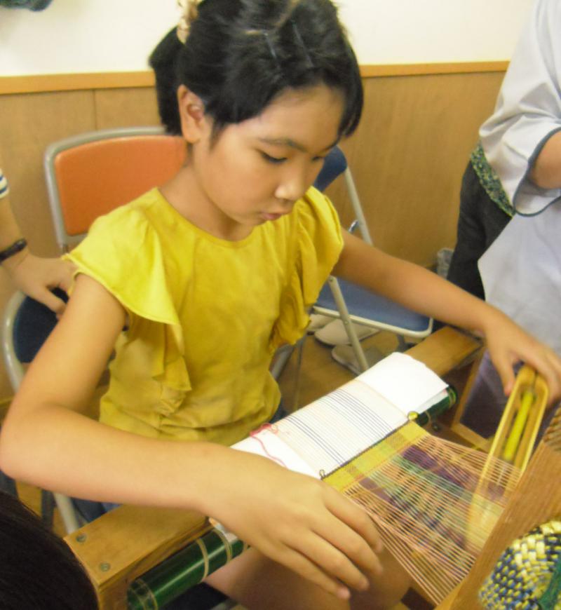 手織り体験では、1時間という限られた時間内で、30p以上の長さになるお友達もいて