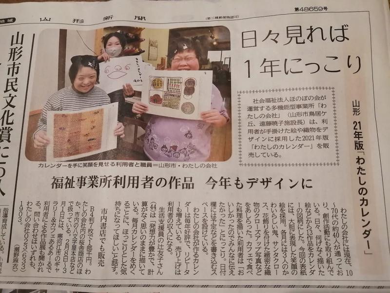 山形新聞で「わたしのカレンダー2021」のことを紹介していただきました\(^o^)/