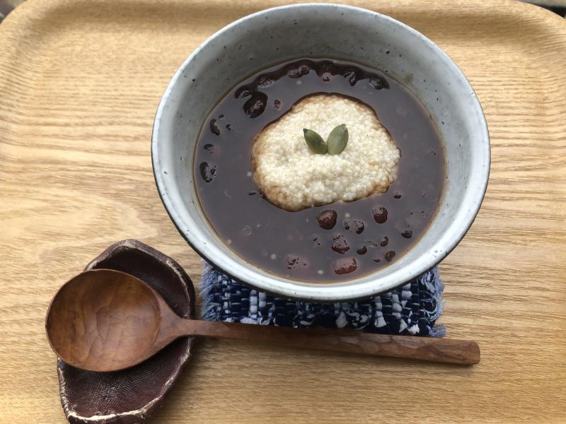 ゆっくりことこと煮た大納言豆に黒糖や玄米水飴などを合わせて