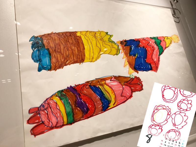 活動の合間に見に行った、高瀬川のこいのぼりを見た後にうまれた作品です。
