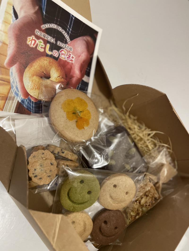 今回は私達と同じ就労継続支援B型事業所のミライファームさんでていねいに育てられたエディブルフラワーのクッキーが入り、華やかさのあるBOXとなりました。
