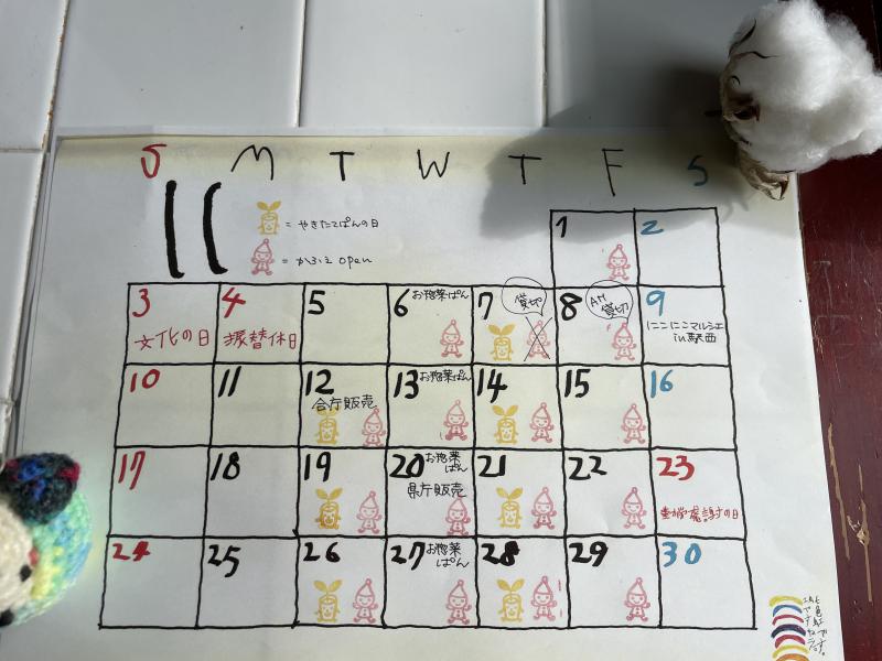 11月の営業日カレンダーです。