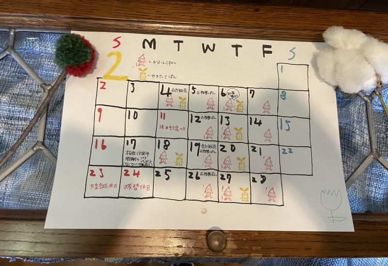 2月の営業日カレンダーです。